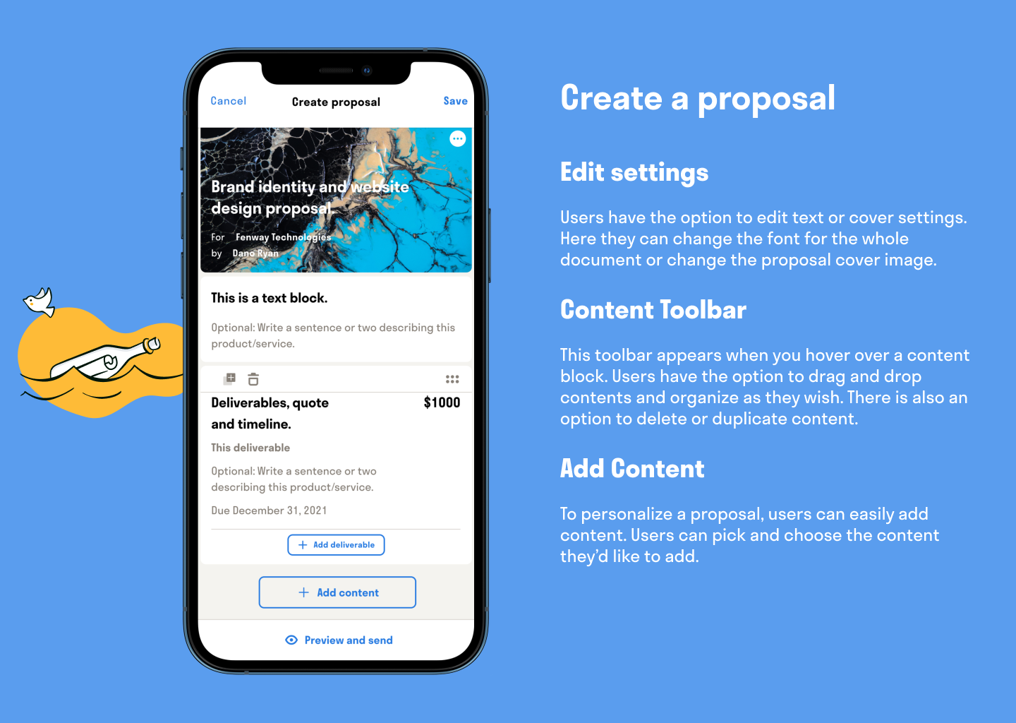 Hectic is a digital workspace with all the tools needed to start, manage and grow a freelancing business. However, the current mobile app for Hectic does not have an established proposal tool.